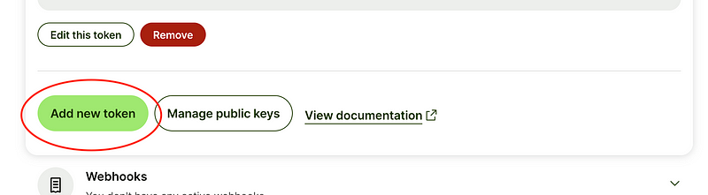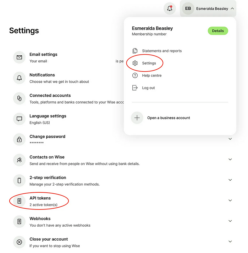 To set up your API keys, first go to “Settings” and then to “API tokens”:
